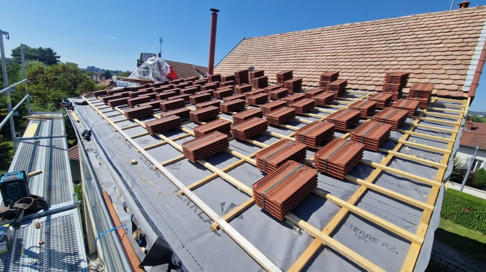 - Enlèvement de la couverture existante (en tuiles mécaniques)