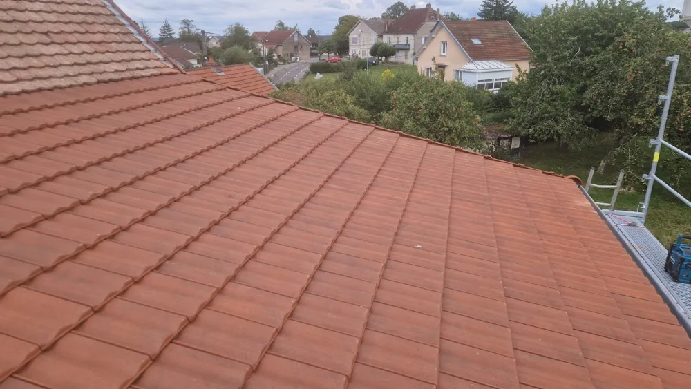 - Remise à neuf de la couverture avec remplacement par des tuiles mécaniques pour toiture à faible pente